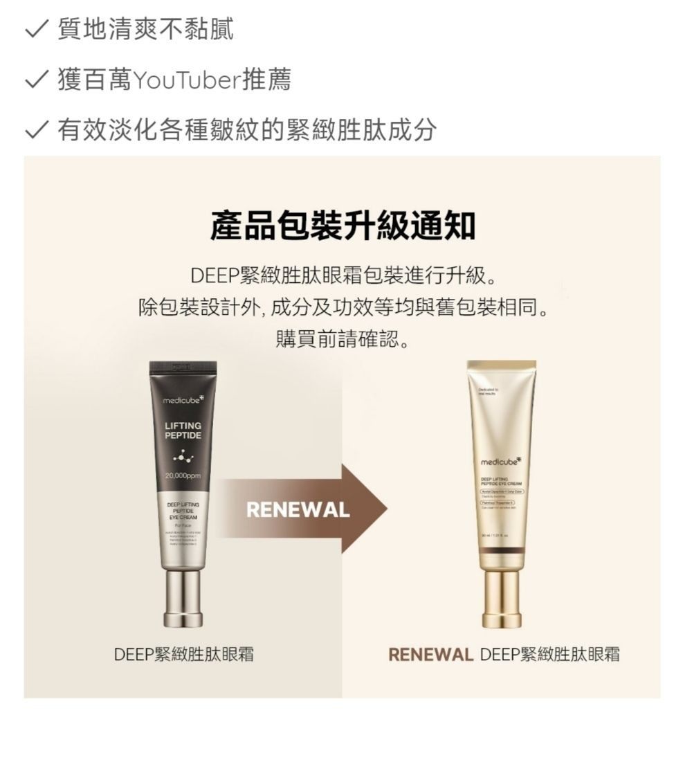 韩国Medicube胜肽眼霜保湿亮白改善细纹提拉紧致抗皱敏感肌正品