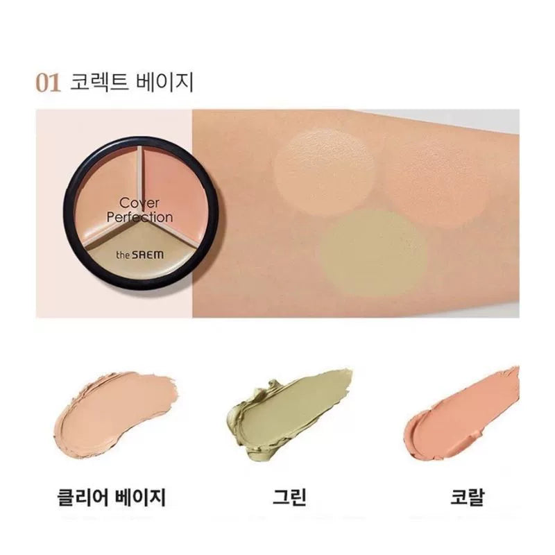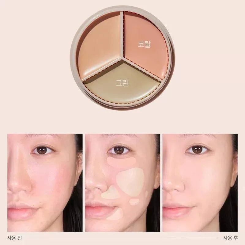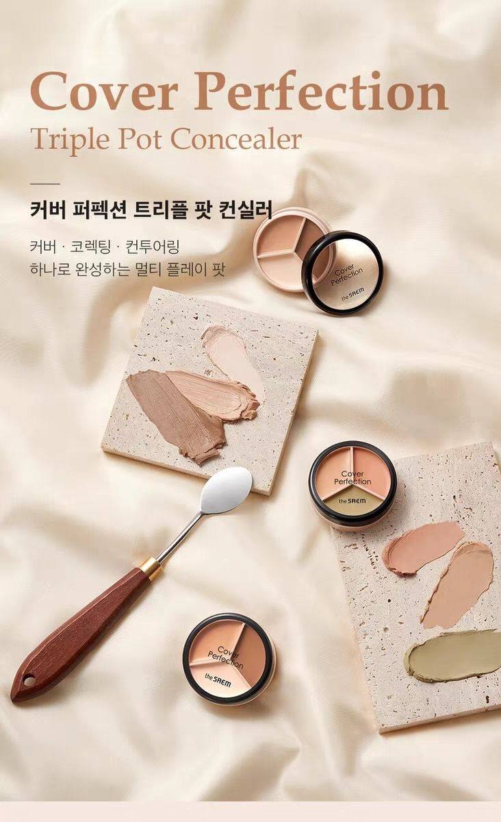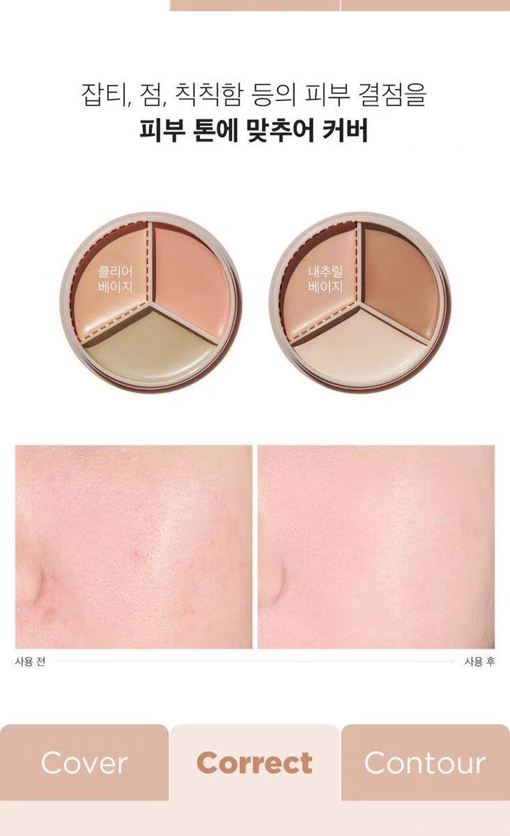 韩国The Saem得鲜三色遮瑕盘侧影粉修容修饰斑点黑眼圈提亮正品